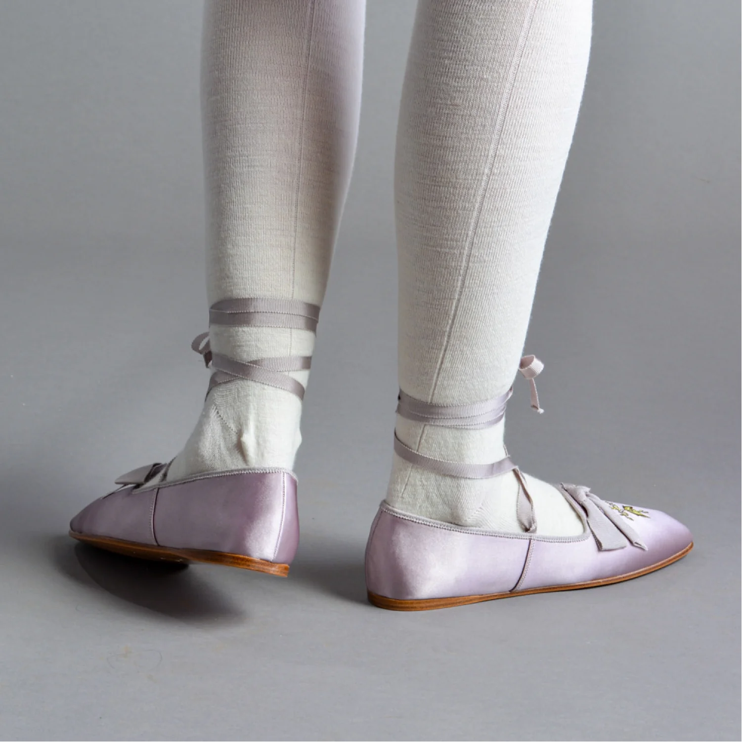- Petersham binding, ankle ribbons, and bow